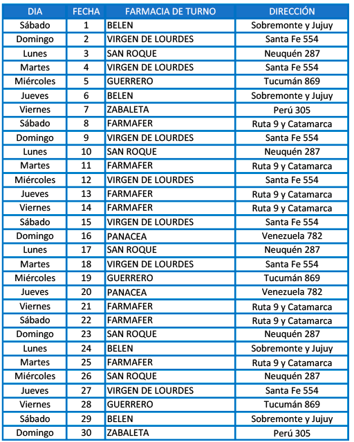 FARMACIAS DE TURNO NOVIEMBRE 2025